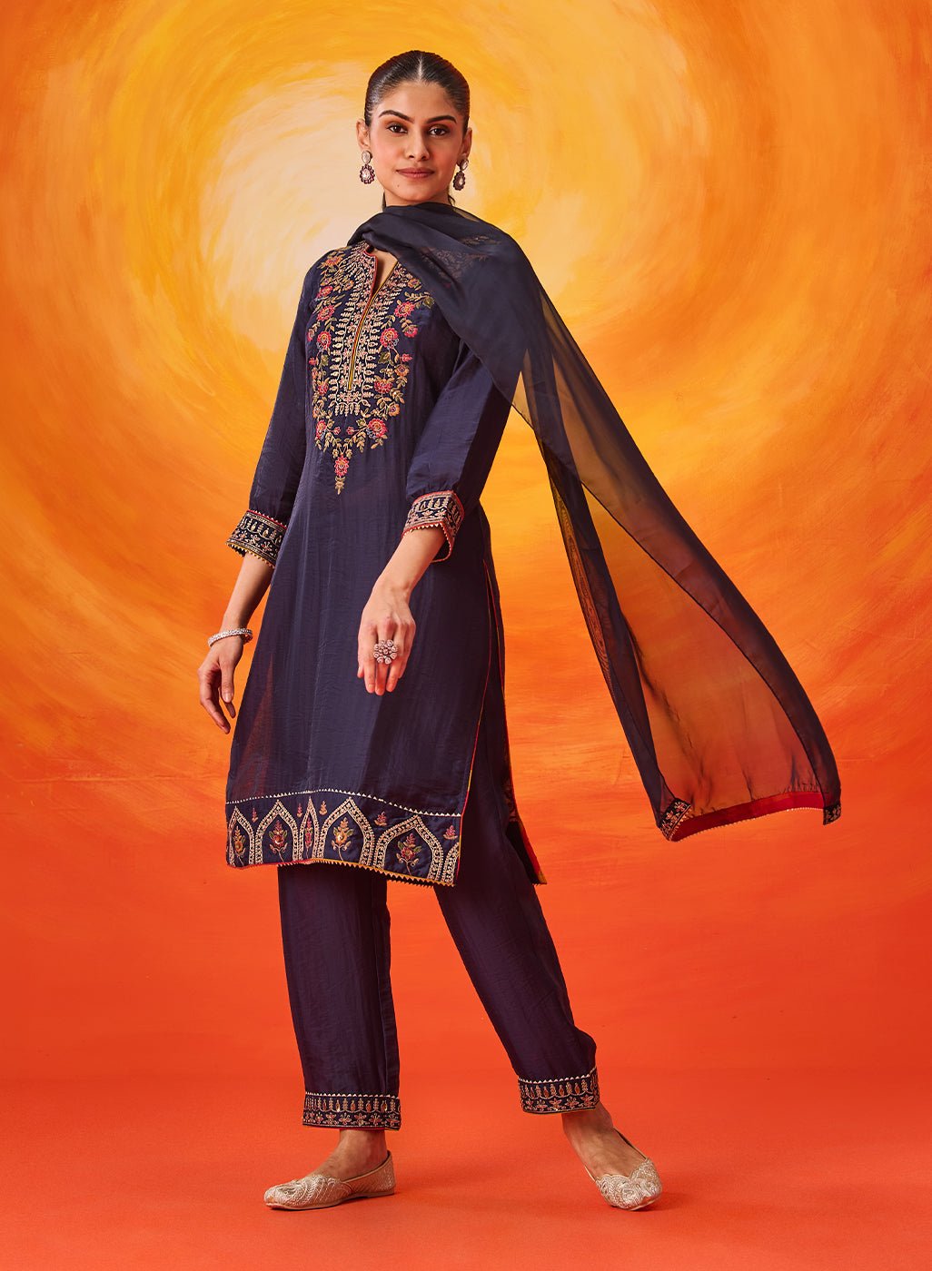 Be the first to review “Alya Navy Embroidered Suit Set with Dupatta”