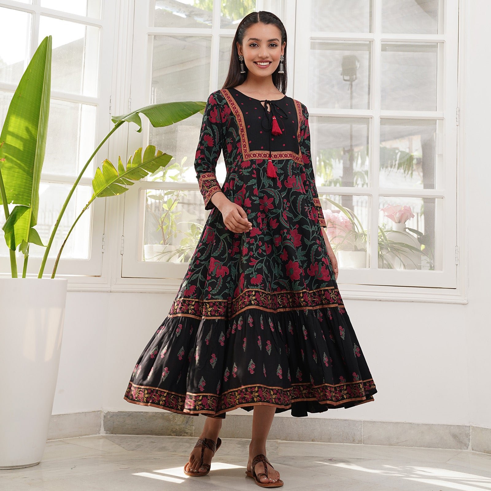 Embrace a Dewey look with this Floral Dress. The dress is flared with pocket and hem detailing, designed for the day out. Just slip it on and you’re set!