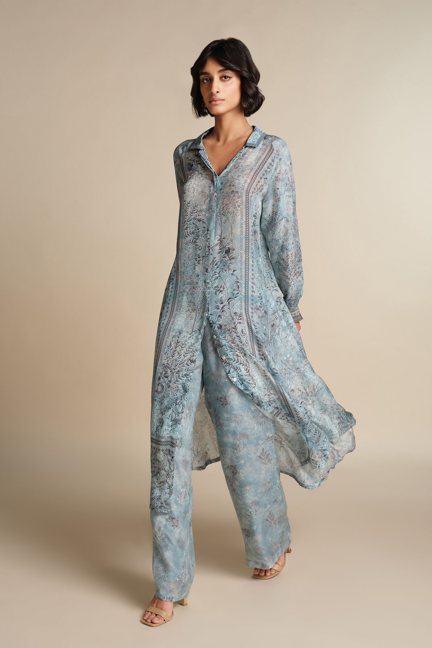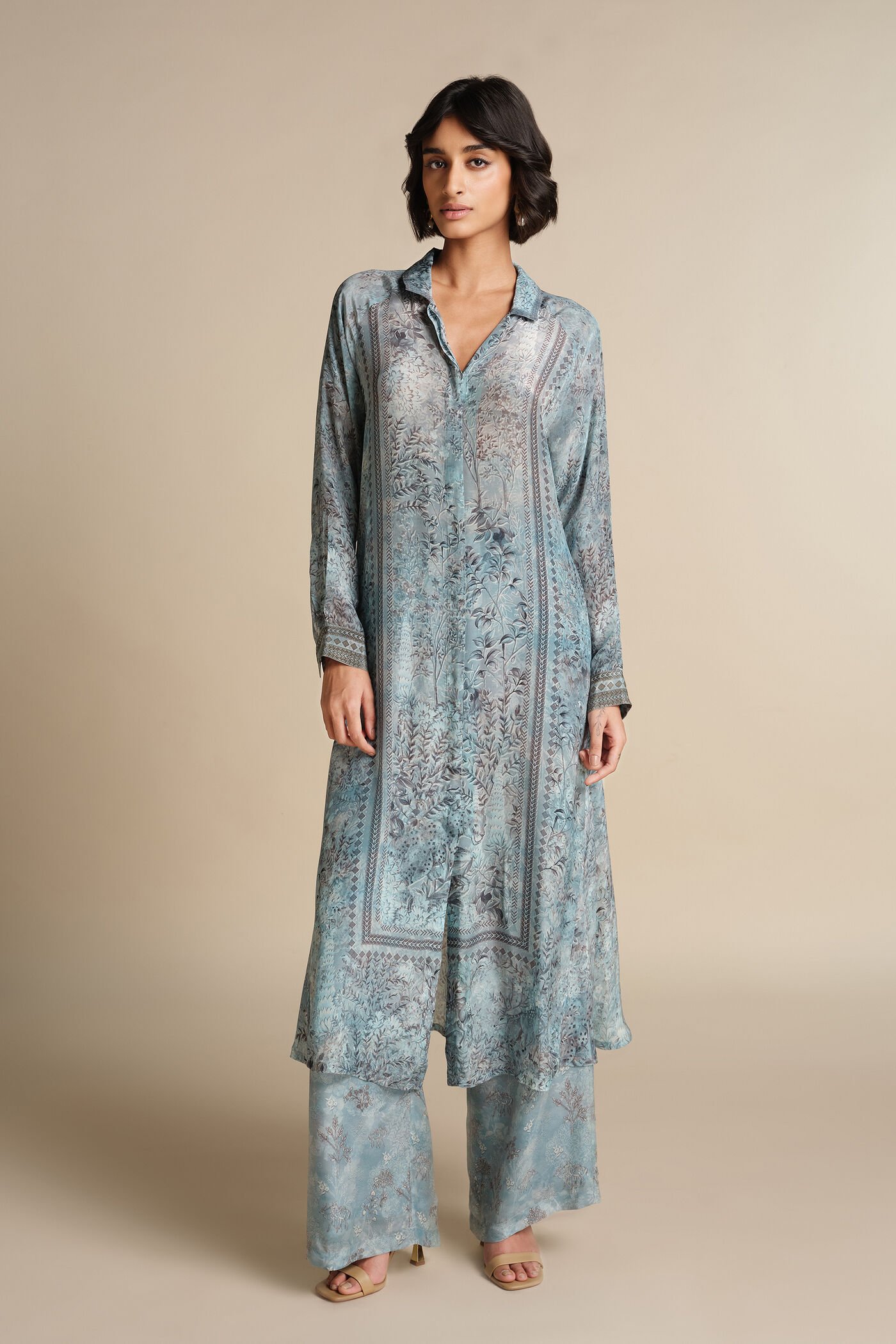 Perfect for office wear, casual gatherings, and small festive events, this Blue Crepe Kurta Set pairs effortlessly with minimal accessories and classic footwear. Its comfortable fabric, contemporary print, and versatile styling make it a must-have addition to your ethnic collection.