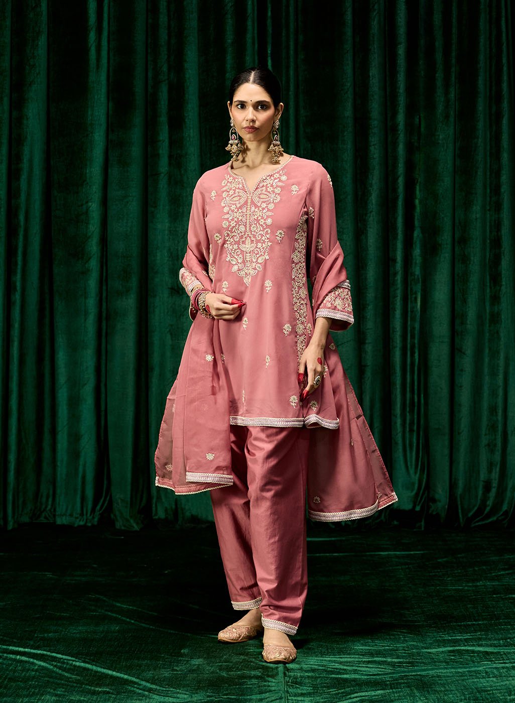 Style Tip: Complete the look with soft curls, chandbali earrings, and embroidered juttis for an effortlessly festive vibe.