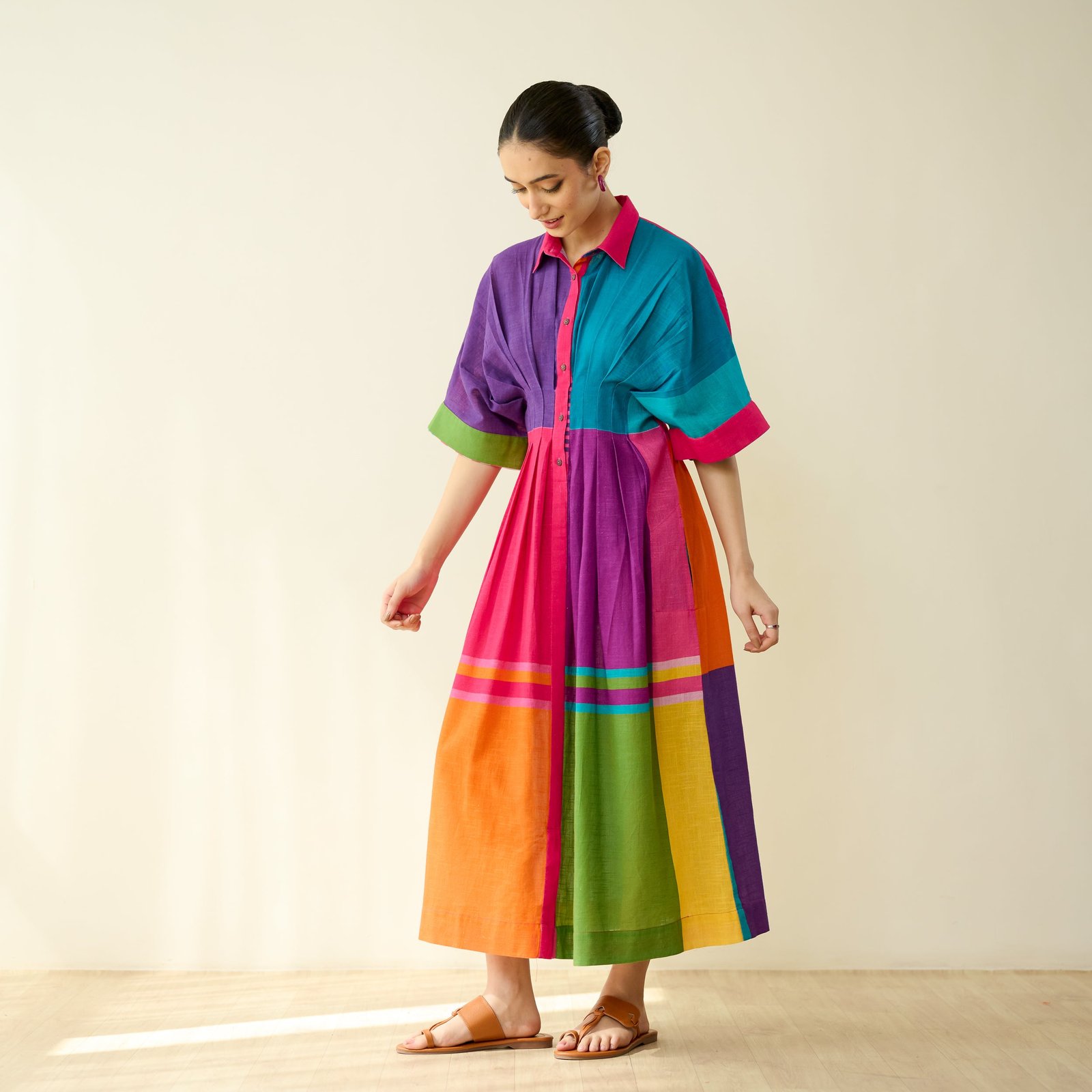 Be the first to review “Pop Checks Pure Slub Cotton Dress – Multicolour”