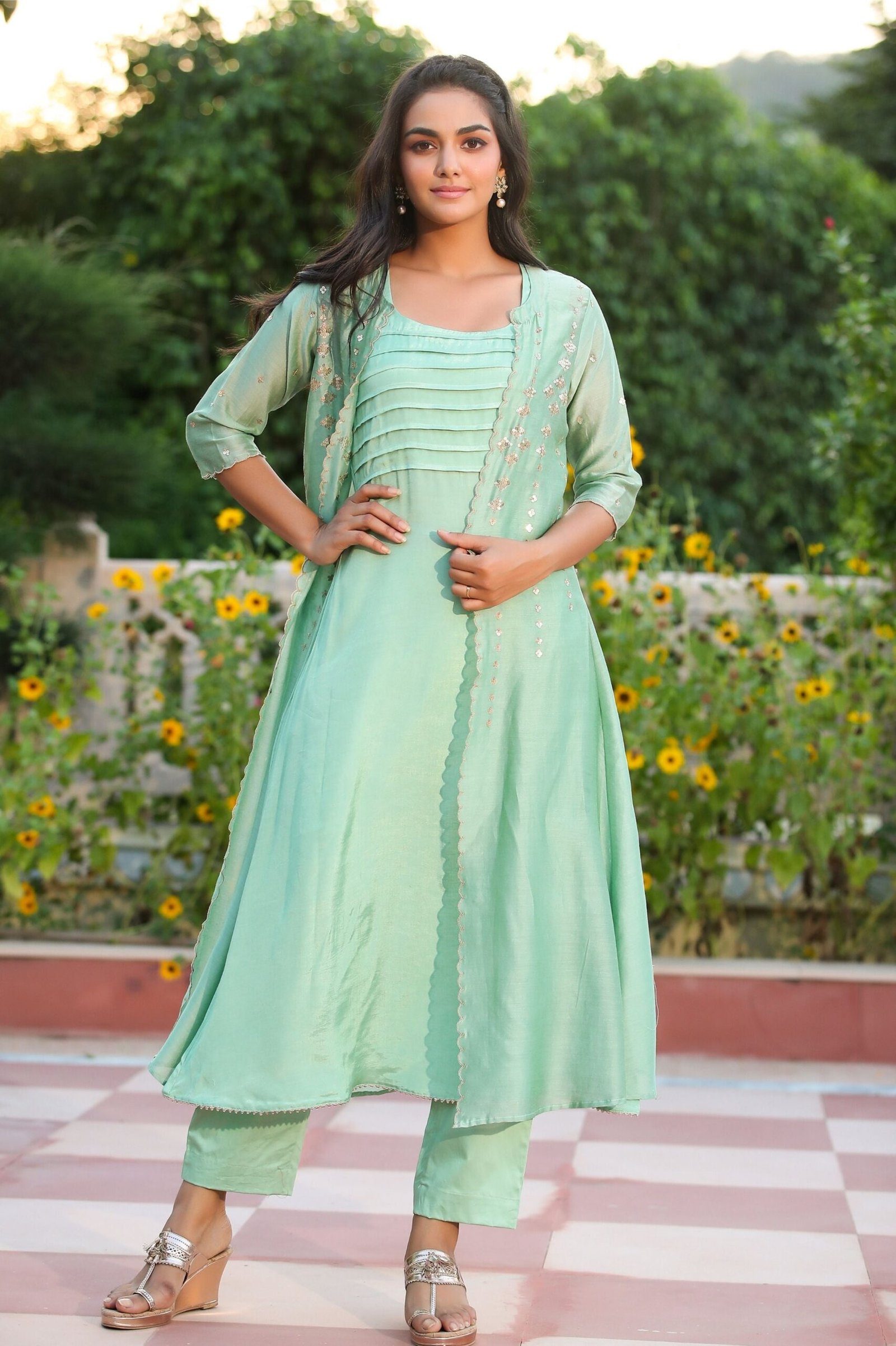 3/4th?Sleeves with sequence embroidery